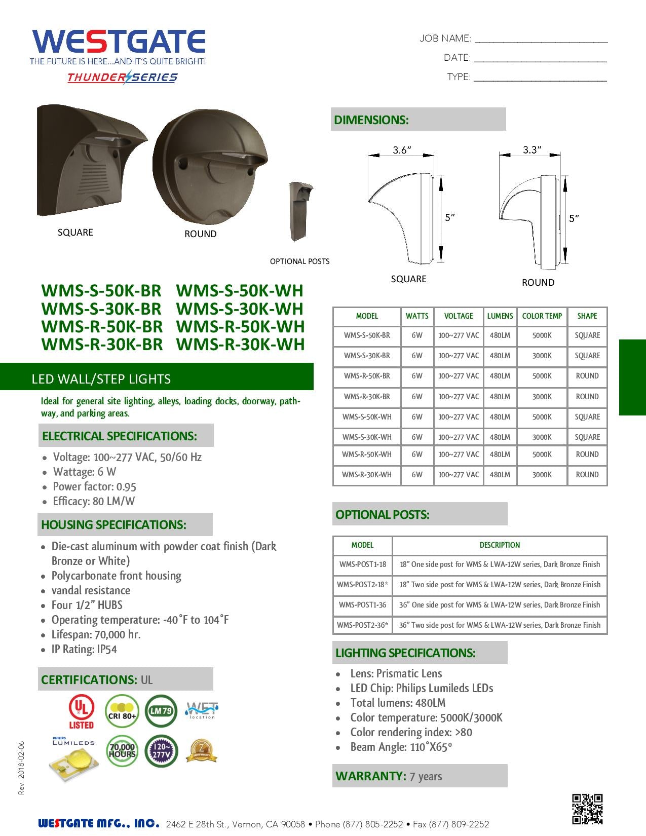 - Die-cast aluminum with powder coat finish (Dark Bronze), optimized for LED