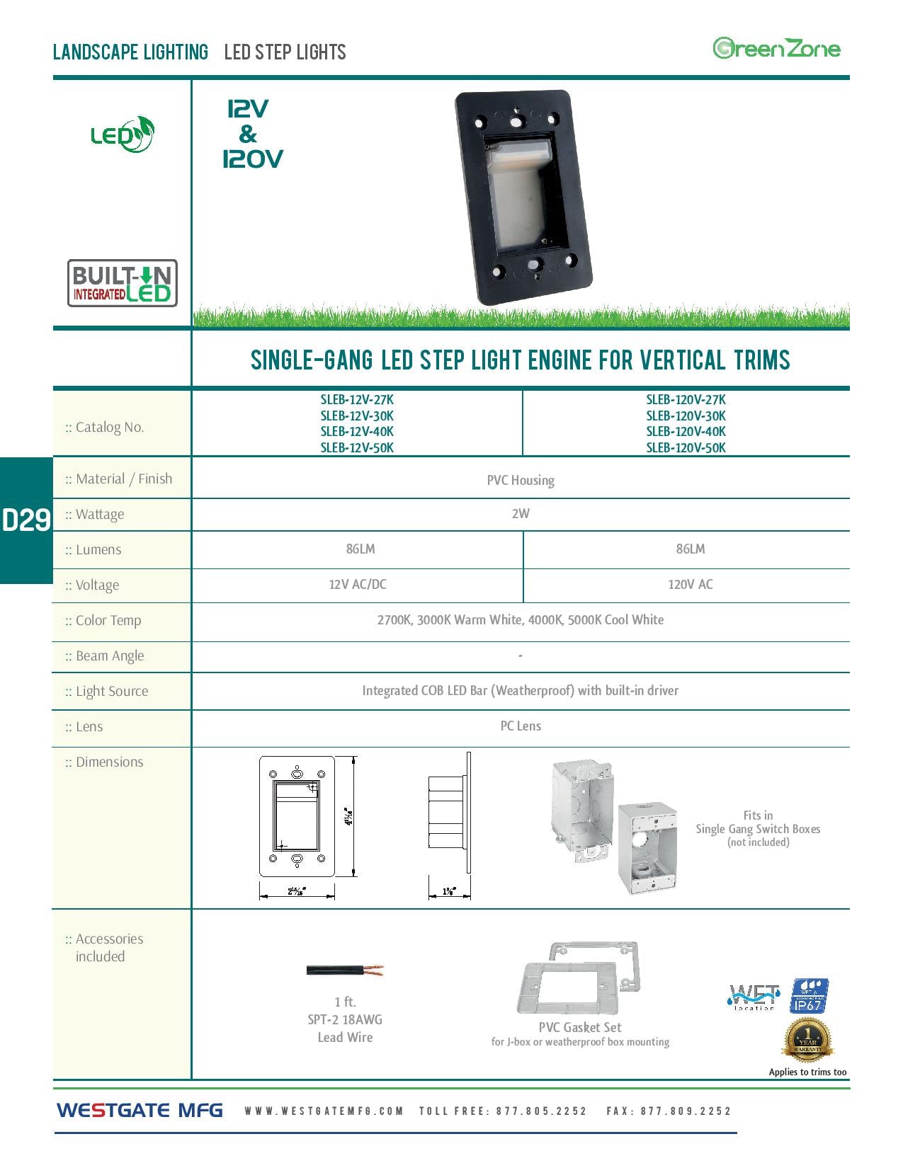 Single-Gang LED Step Light Engine For Vertical Trims - WESTGATE